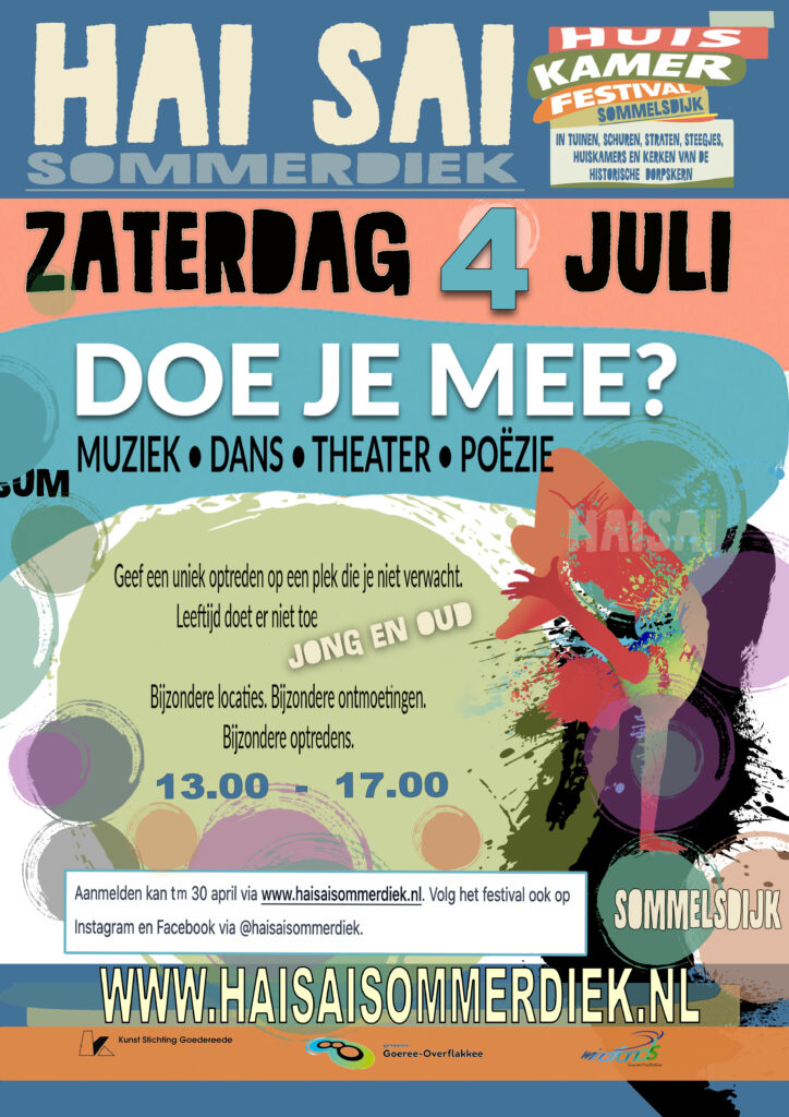 Zaterdag 4 juli 2026 het HaiSai Huiskamer Festival in het centrum van Sommelsdijk!